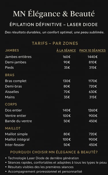 Chez MN Élégance & Beauté, chaque prestation est ciblée, précise et adaptée à votre corps.